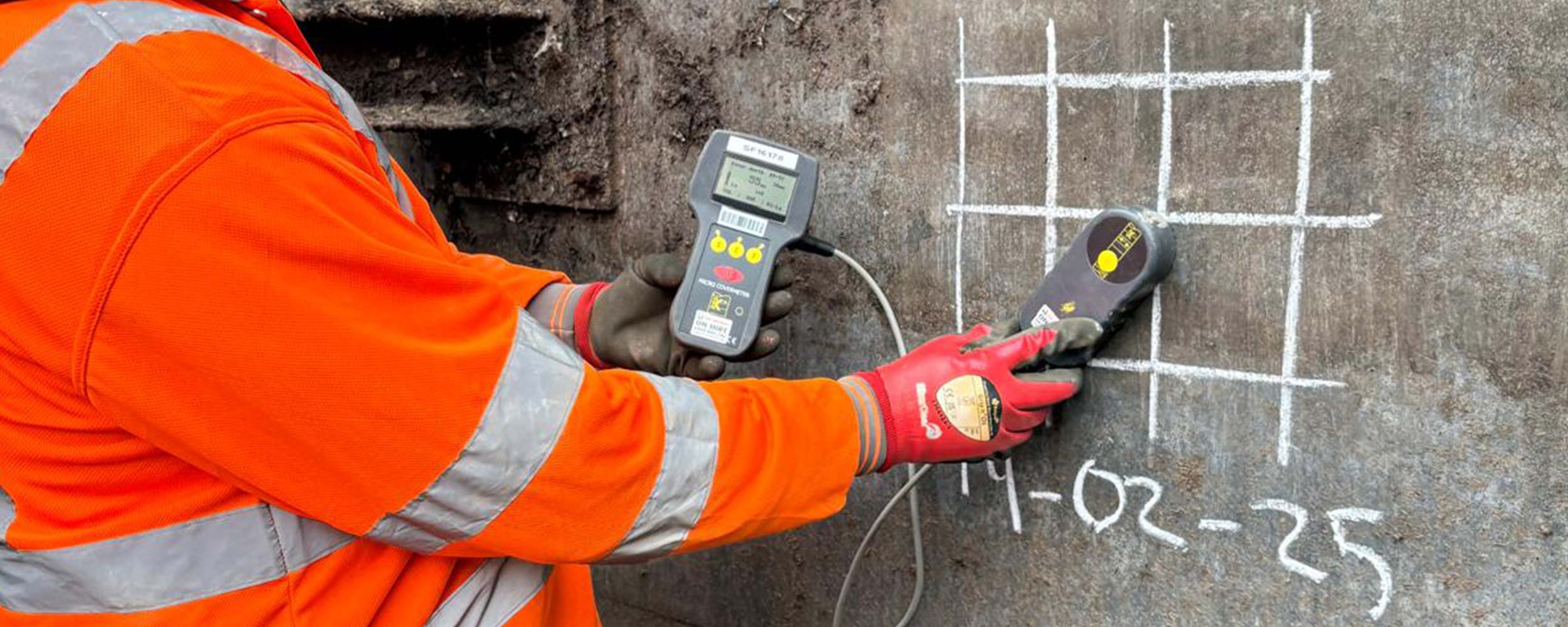 In addition to hammer sounding, we utilise non-destructive ultrasonic testing. This advanced technique allows for further analysis of the tank’s condition by sending high-frequency sound waves through the concrete to detect internal defects.